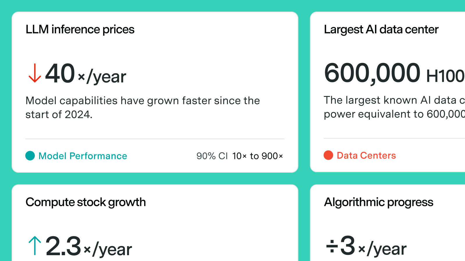 Given this, Epoch AI is thrilled to announce the launch of our new dashboard, which covers key numbers and figures from our research to help understand the present and future of machine learning. This includes: