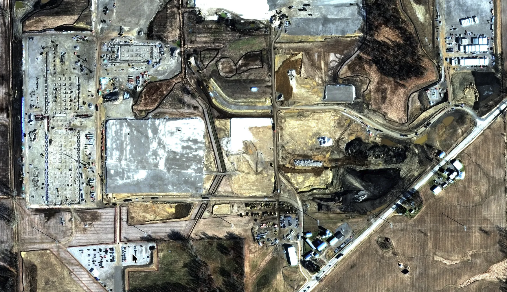 Related Digital is developing a campus dubbed “The Barn” in Saline Township, southwest of Detroit. Satellite imagery shows foundation work underway for the first building.