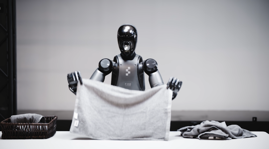 Physical Intelligence has demonstrated robots folding t-shirts, towels, and even jeans and shirts (though shirts must already be buttoned). They report 95% success on t-shirts and shorts, dropping to 75% on harder items like jeans. Figure’s humanoid robot ($130,000) has shown similar capabilities with towels. (see image above)