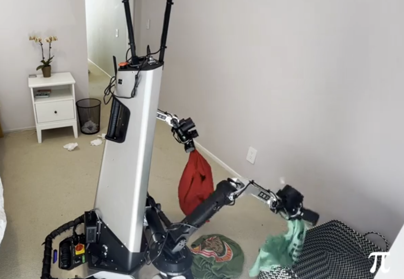 PI has demonstrated transfer to new contexts: their π0.6 model can fold 50 novel items in a new home. DYNA has shown generalization to new environments (folding in an office lobby, a parking lot, and a conference exhibition hall), and to clothing items not encountered before7.