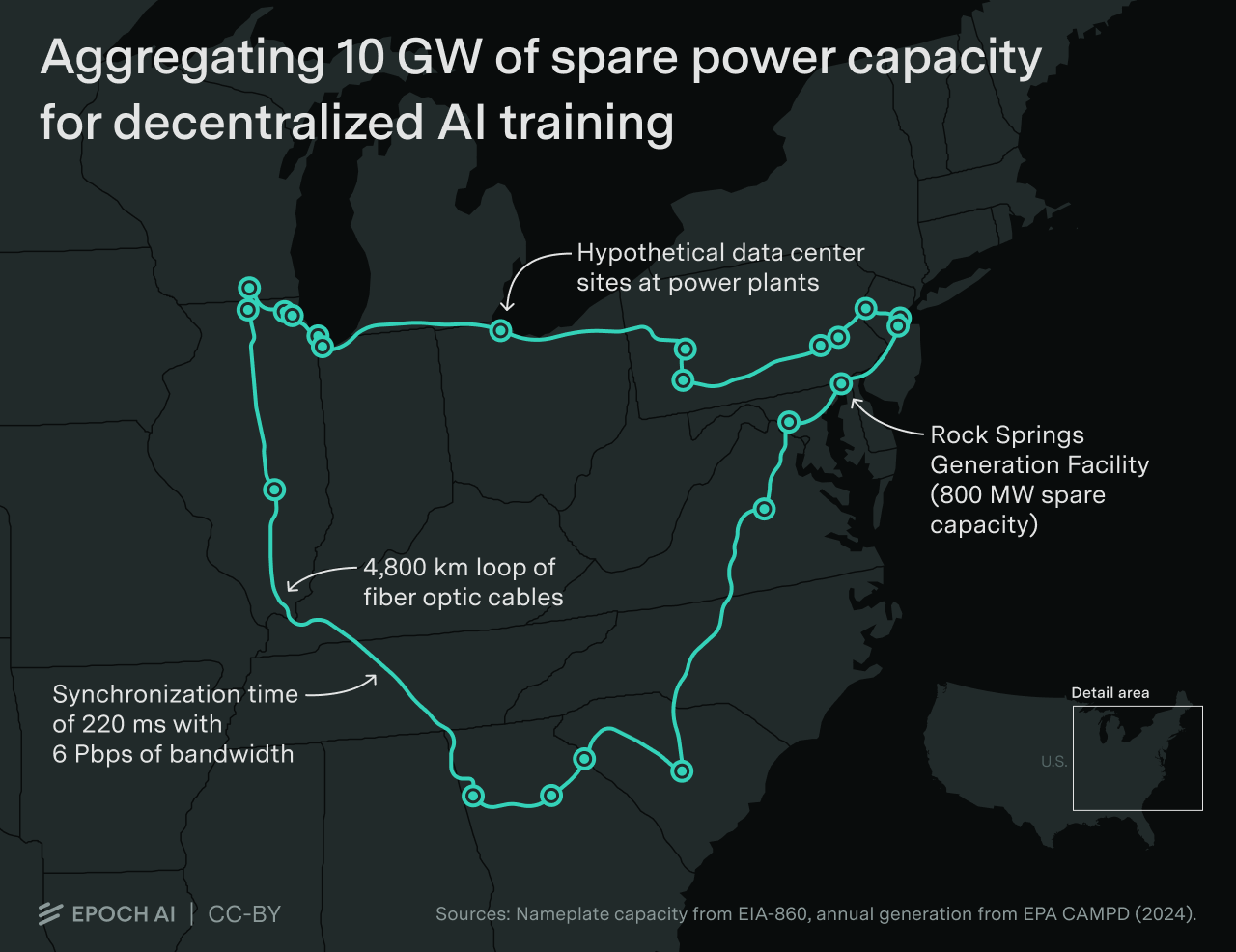 We illustrate a decentralized 10 GW training run across a dozen sites spanning thousands of kilometers. Developers are likely to scale datacenters to multi-gigawatt levels before adopting decentralized training.