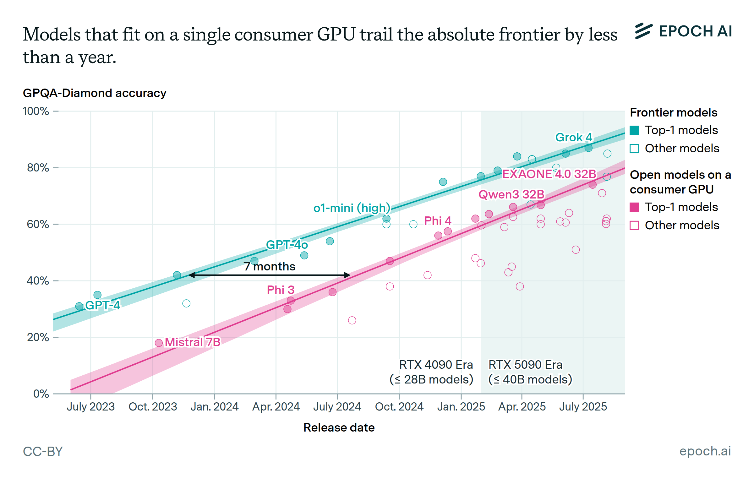 Frontier AI performance becomes accessible on consumer hardware within a year