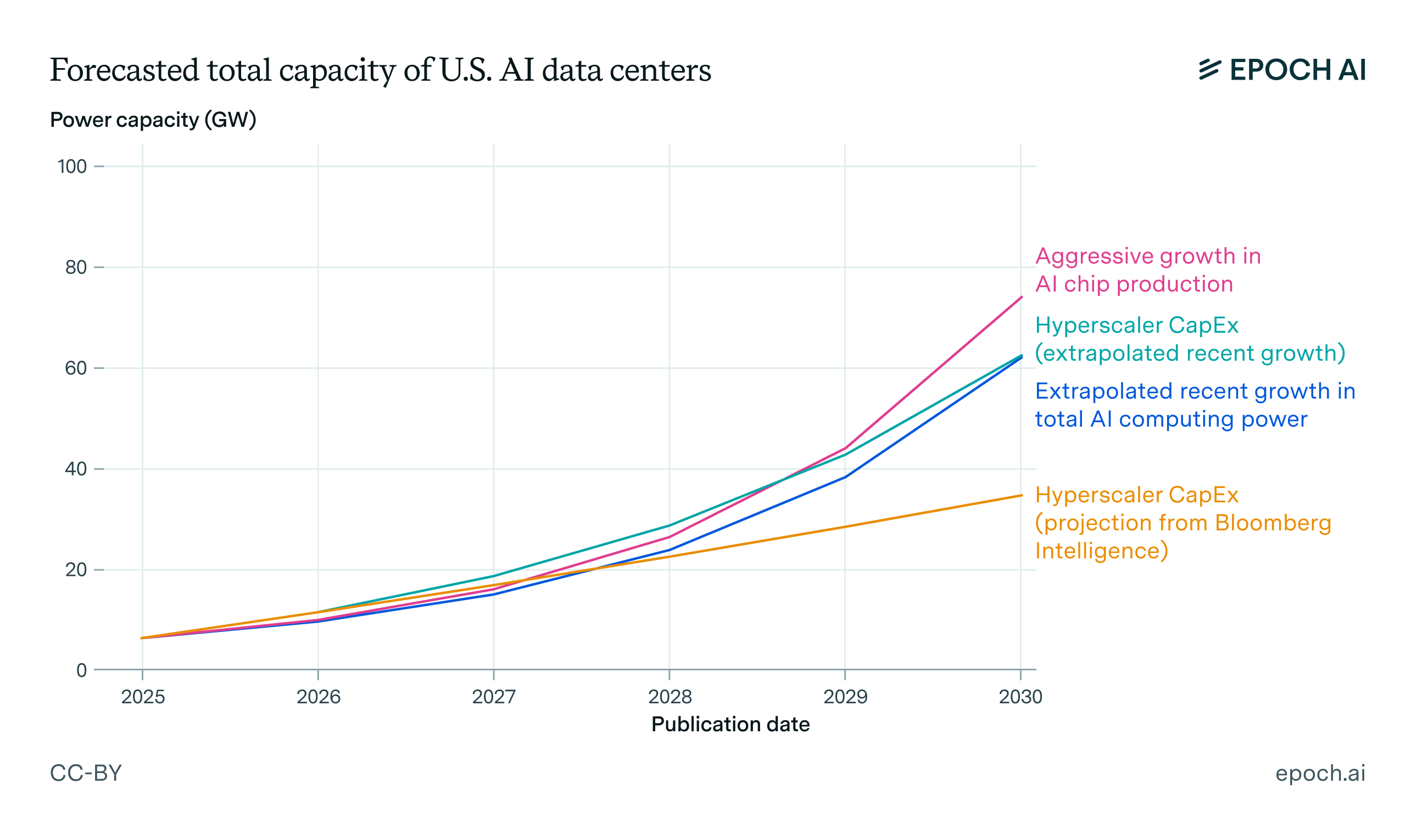 You might be thinking, “there’s a big elephant in the room here — isn’t AI going to hugely increase US power demand?” And you’d be right. AI has driven recent spikes in power demand, and AI data centers in the US will need 30 to 80 GW of power by 2030.