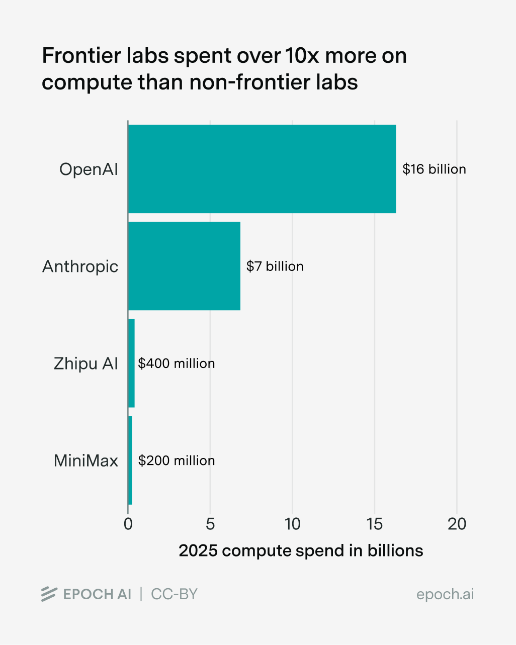 This is the situation that many Chinese and open model companies find themselves in; relative to frontier companies, they’re “compute-poor”. Just last year, Anthropic spent over ten times more on compute than Minimax and Zhipu AI combined, and the gap is even wider for OpenAI: