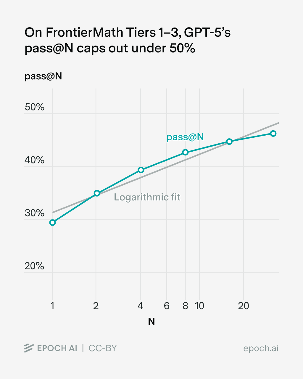 GPT-5 Pass@N on FrontierMath Tiers 1–3 | ||||